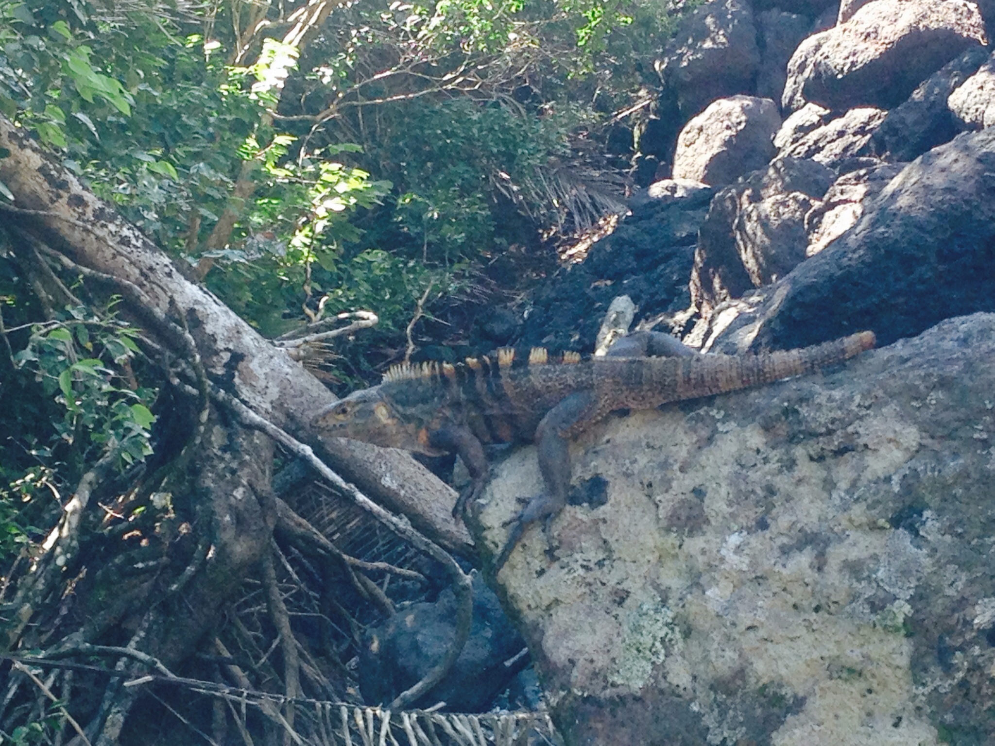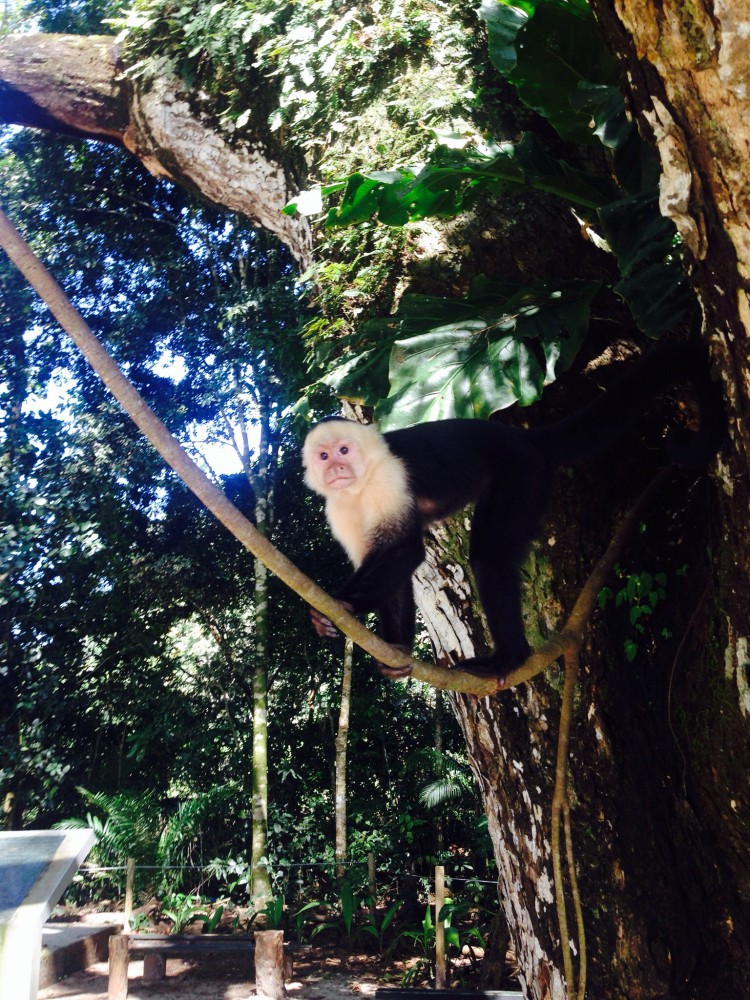 Our tour lasted a couple of hours and then we headed to the beach. There are two easy to access beaches in the park: Playa Manuel Antonio and Playa Espadilla Sur, and at first we opted for the nearest and therefore most crowded. I was wearing my sports stuff so needed to change into my bikini. Being lazy and not wanting to walk the 2 minutes uphill to the changing rooms I attempted to do a ‘subtle’ change behind some rocks. There were a few issues with this: a) I quickly realised that whilst I was hidden to people on the beach, everyone in the sea could see me; b) the rocks I had picked to balance on were both very spiky and very hot; c) when I lost my balance and went to grab onto a higher rock I saw a little too late that it was the sunbathing spot of choice of a giant lizard!!! All in all a rather traumatic experience. In future I will learn not to be lazy and to go to the proper changing rooms (I probably won’t..)