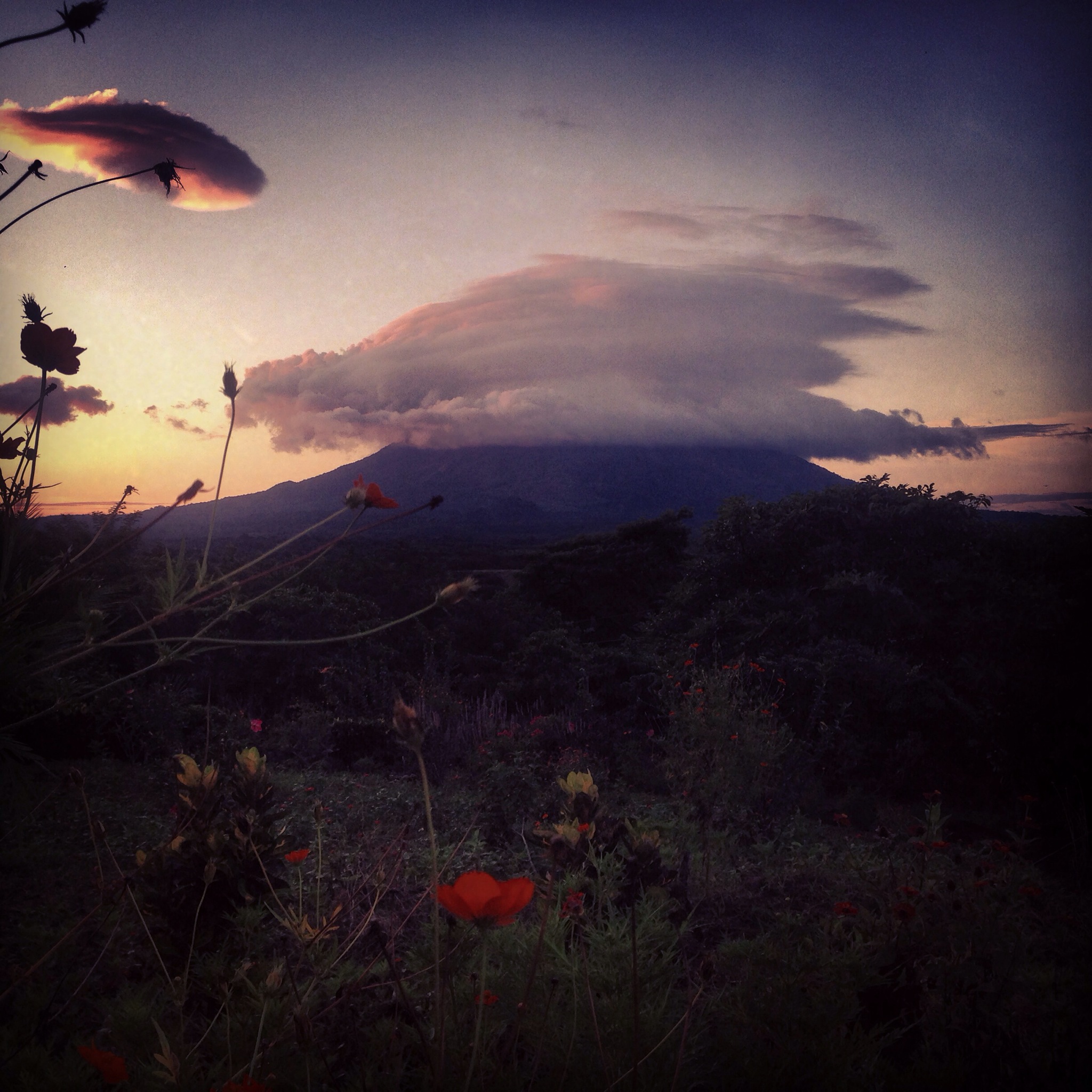 When we got back from the cycle, sweaty and fly ridden again, we had a drink out on the lawn of the Santa Cruz hostel and watched the sun setting over conception volcano. It was rather magical!!