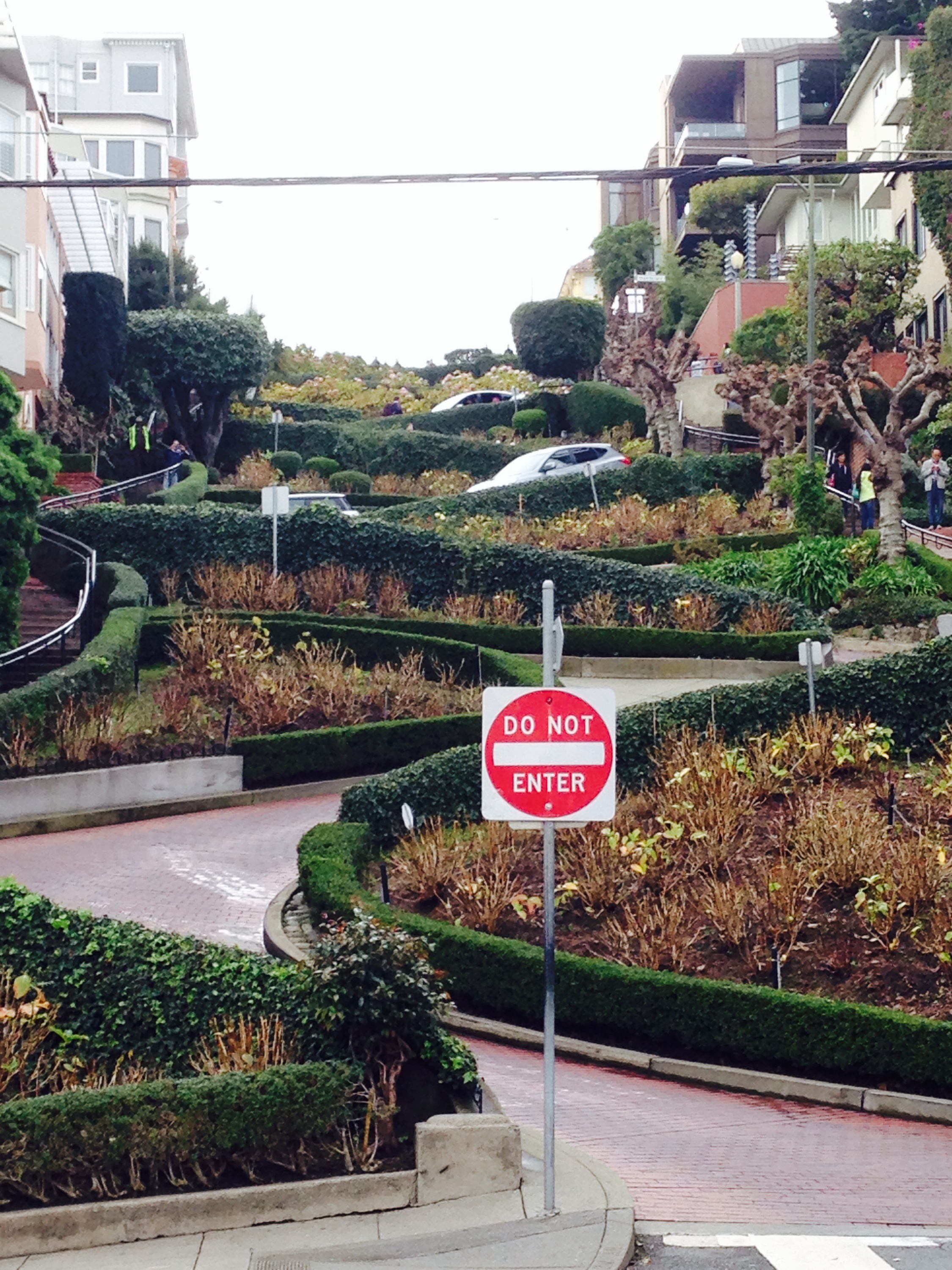 Once we’d got the car we drove uptown to meet Saj and Bansi, who had just landed from NY that morning. We had breakfast and then went on a little driving tour of SF. I mean why not start off by challenging myself with major city traffic and insane hills?! All I can say is thank goodness I had an automatic, otherwise there would have been some definitely smashy-smashies on the hill starts. They seem to find it amusing to put a ‘Stop’ sign at the top of all the steep sections of road, leaving the car teetering on the edge, and a moment of faith switching from the brake to the accelerator. The automatic even rolled backwards a little at those points…which shows just how steep it was!
