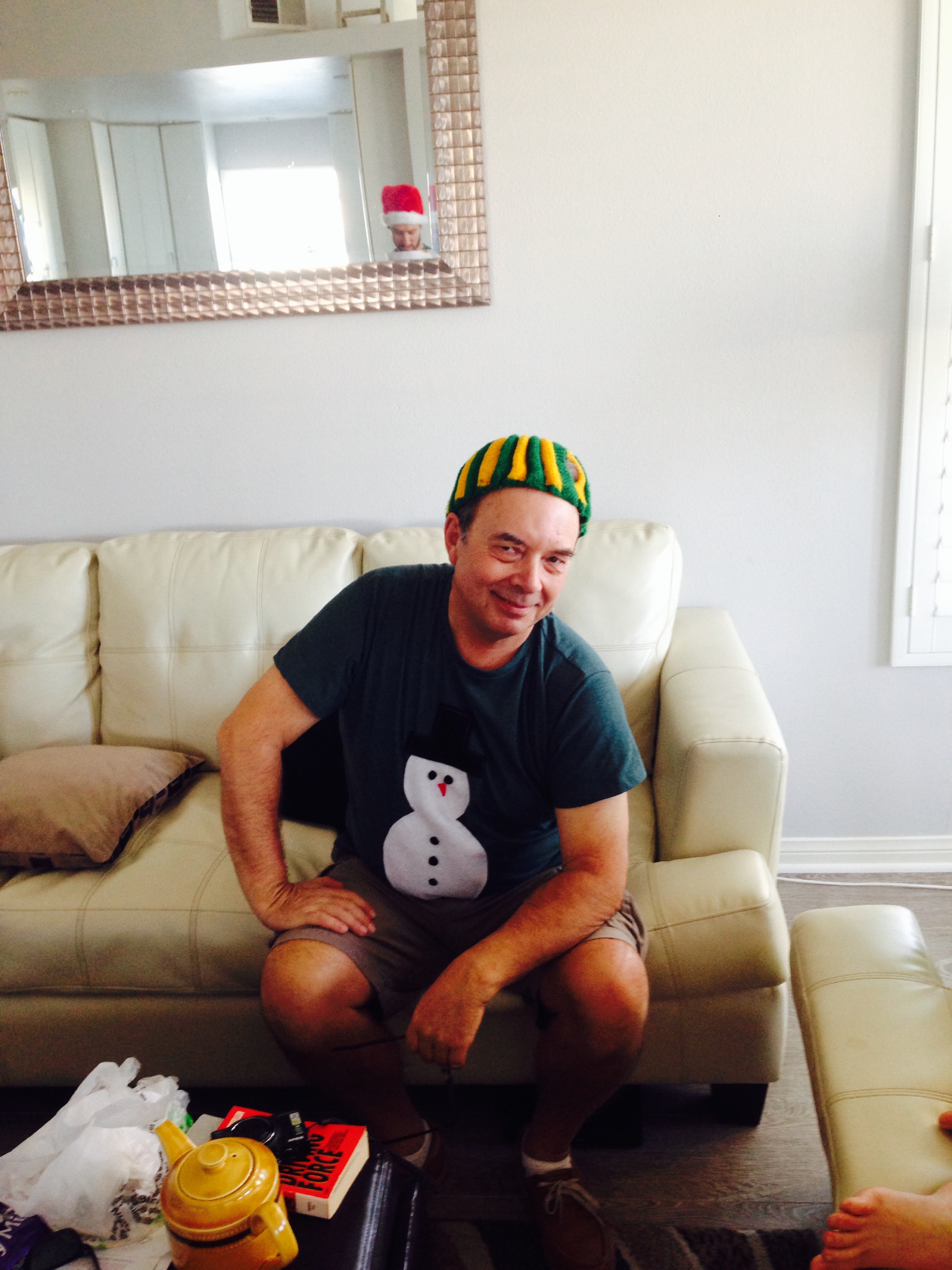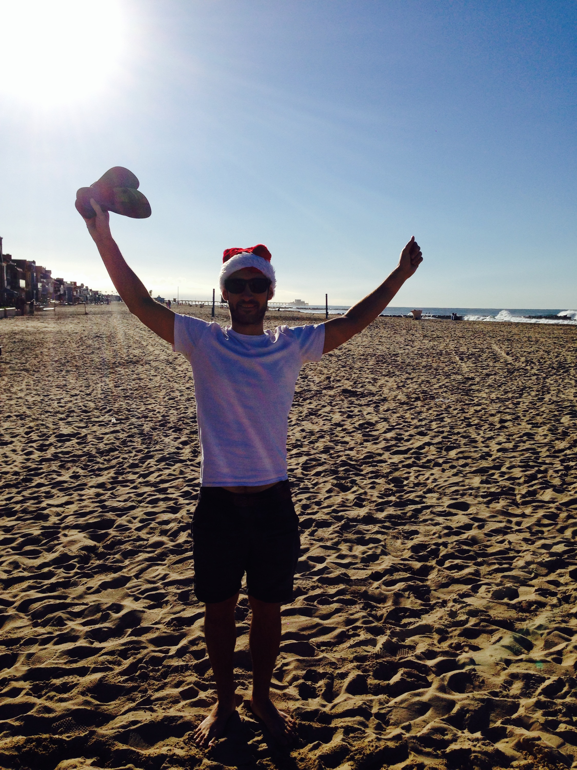 Alec and I headed over to the beach house that his family had rented for the week which was just a few streets away from his place. In fact we walked along the beach, him in his santa hat and me in his uncle sam hat. An excellent start to Christmas.