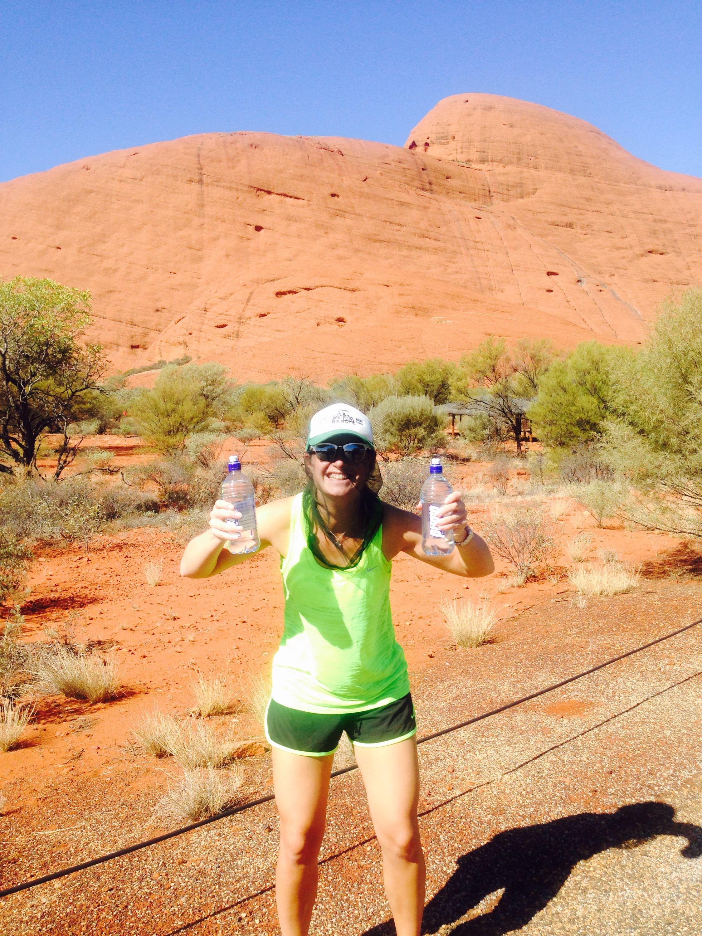 I enjoyed walking around Kata Tjuta more than Ayers Rock, it was a really interesting landscape and you could actually walk in-between the rock domes. Smart and I were also super hiking savvy by this point, and after being tormented by hundred of flies during our Ayers Rock loop on Friday we made sure we were fully equipped this time: FLY NETS BABY!!
