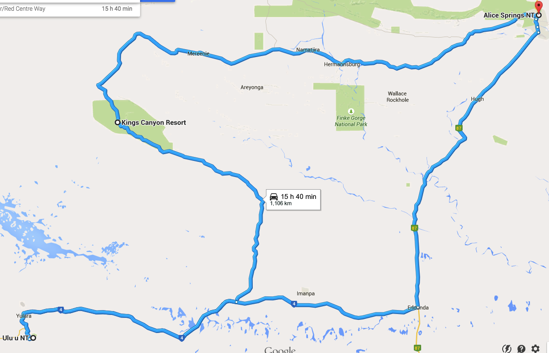 Our final big day of driving back to where we started: Ayers Rock Campground!
