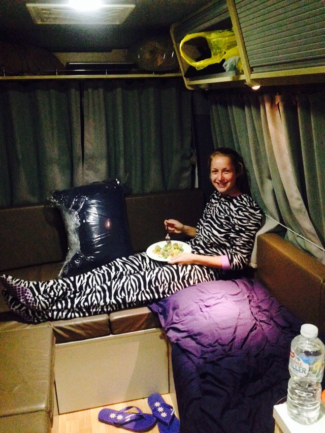 The stronger system only works when you are plugged into the mains at a powered campsite, meaning that when you freedom camp there is no means of heating the van. Given we were in the depths of NZ winter it was a little chilly, but Britz provided us with a couple of extra blankets which helped keep us snug.