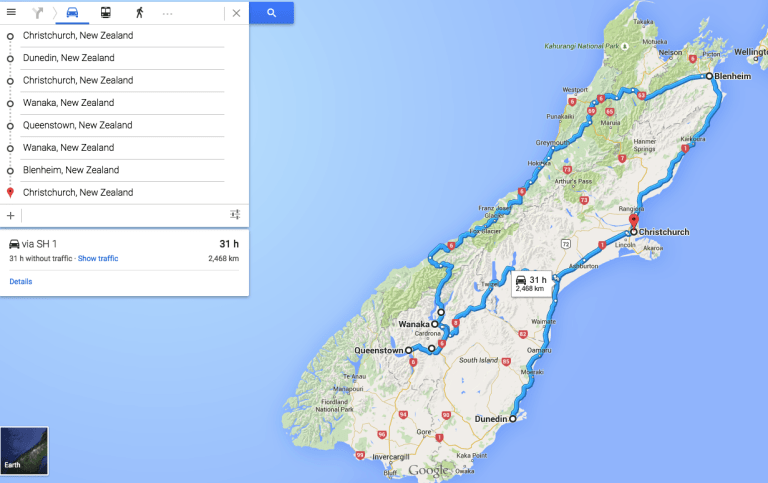 Christchurch – Dunedin – Christchurch – Wanaka – Queenstown – Milford Sound – Wanaka – Blenheim – Christchurch.