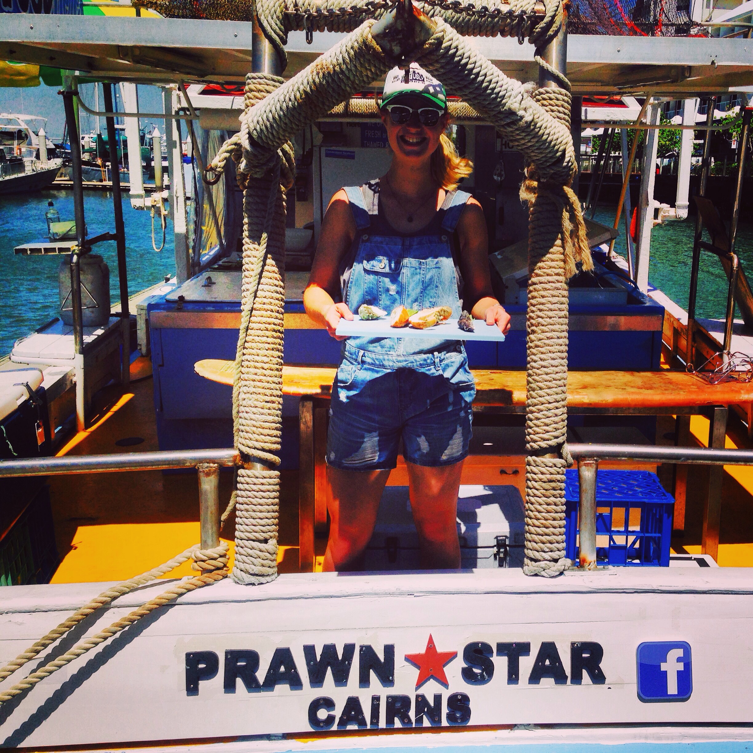 I had booked to go on a Green Island half day cruise at 1pm so had an hour or so to explore around the marina. When looking for a lunch spot I stumbled across Danny and his ‘Prawn Star’ boat in the marina which served up fresh oysters, prawns, bugs…bugs are a sort of cross between a prawn and a lobster. More meaty than a prawn – delicious!