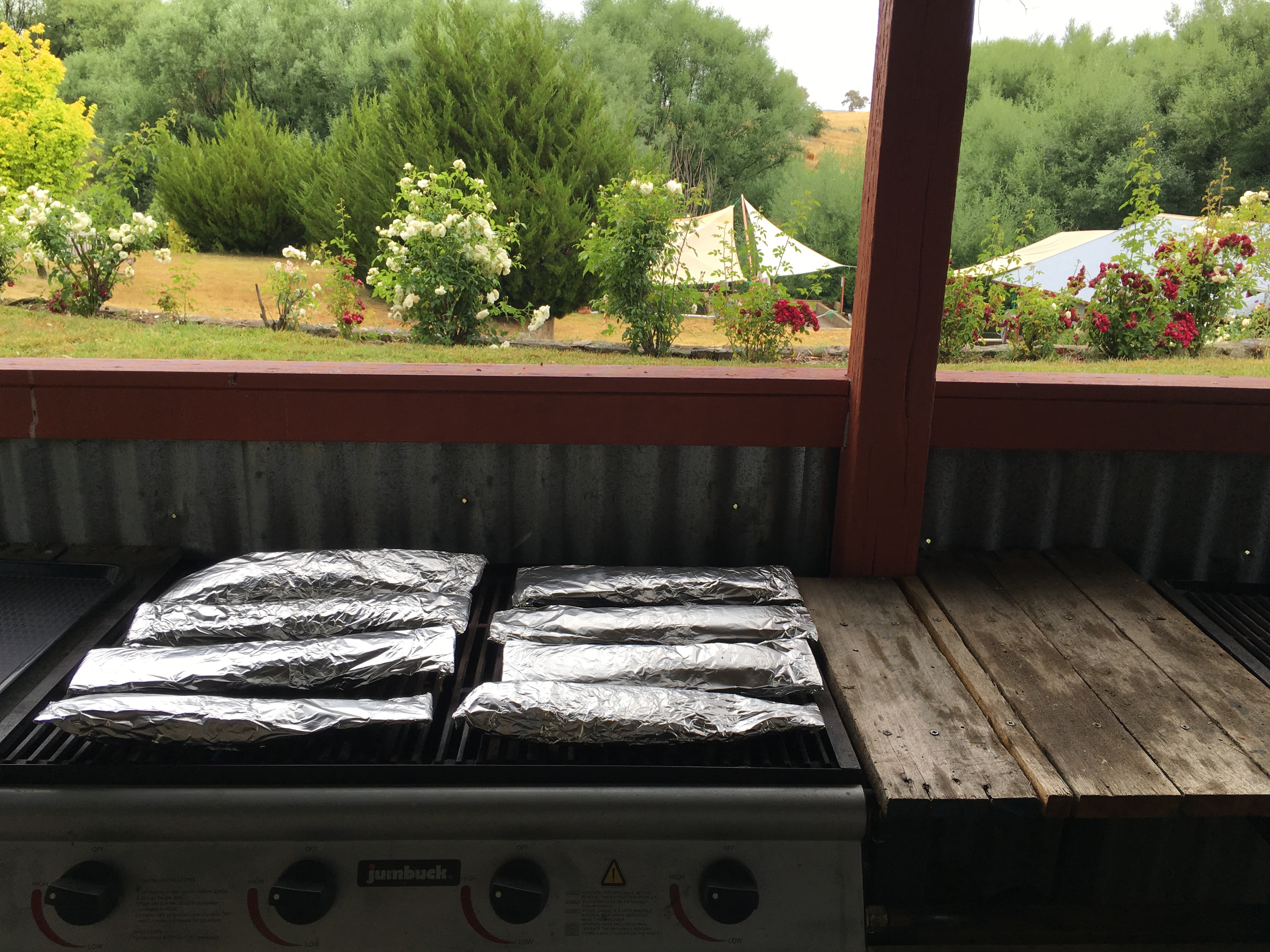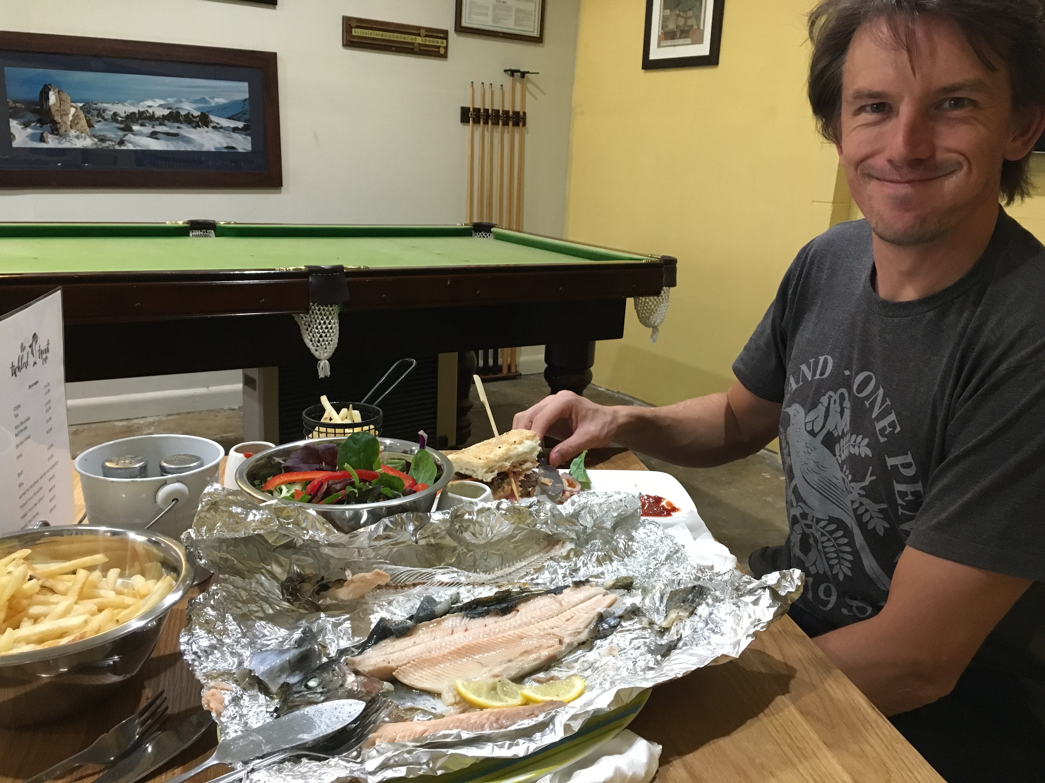 The kitchen prepped our trout with lemon and butter and we took it out to BBQ before eating with some salad and chips.