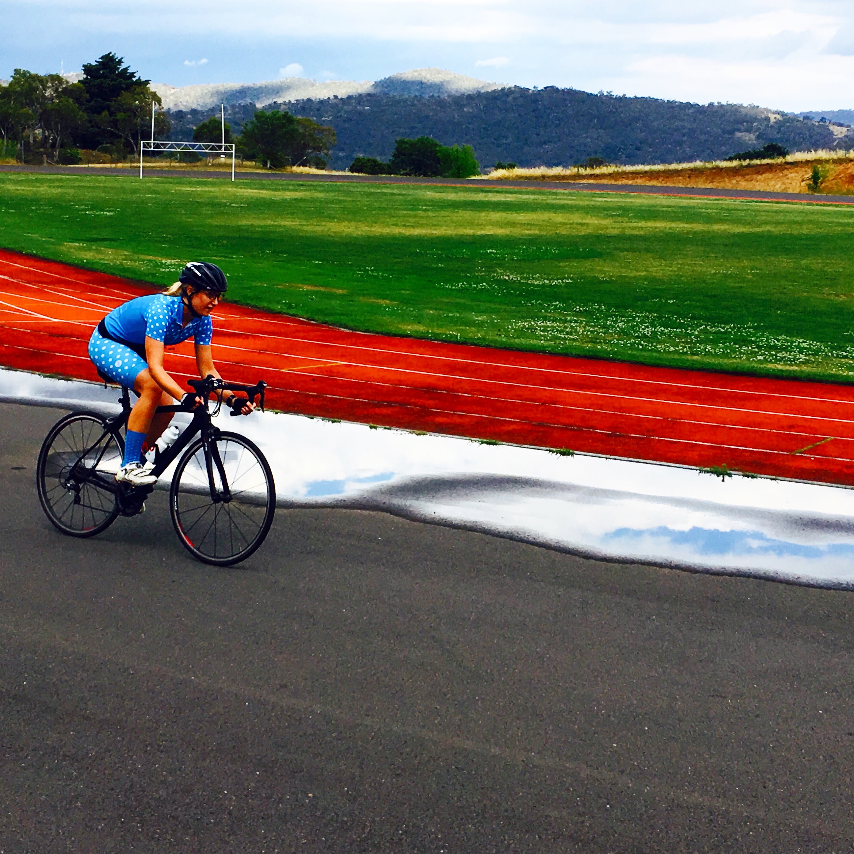 We had one rainy day where we only had a couple of hours window to ride, so we snuck over to the Velodrome at the Institute of Sport where we stayed for camp last year. Probably the only flat riding that there is in Jindabyne.