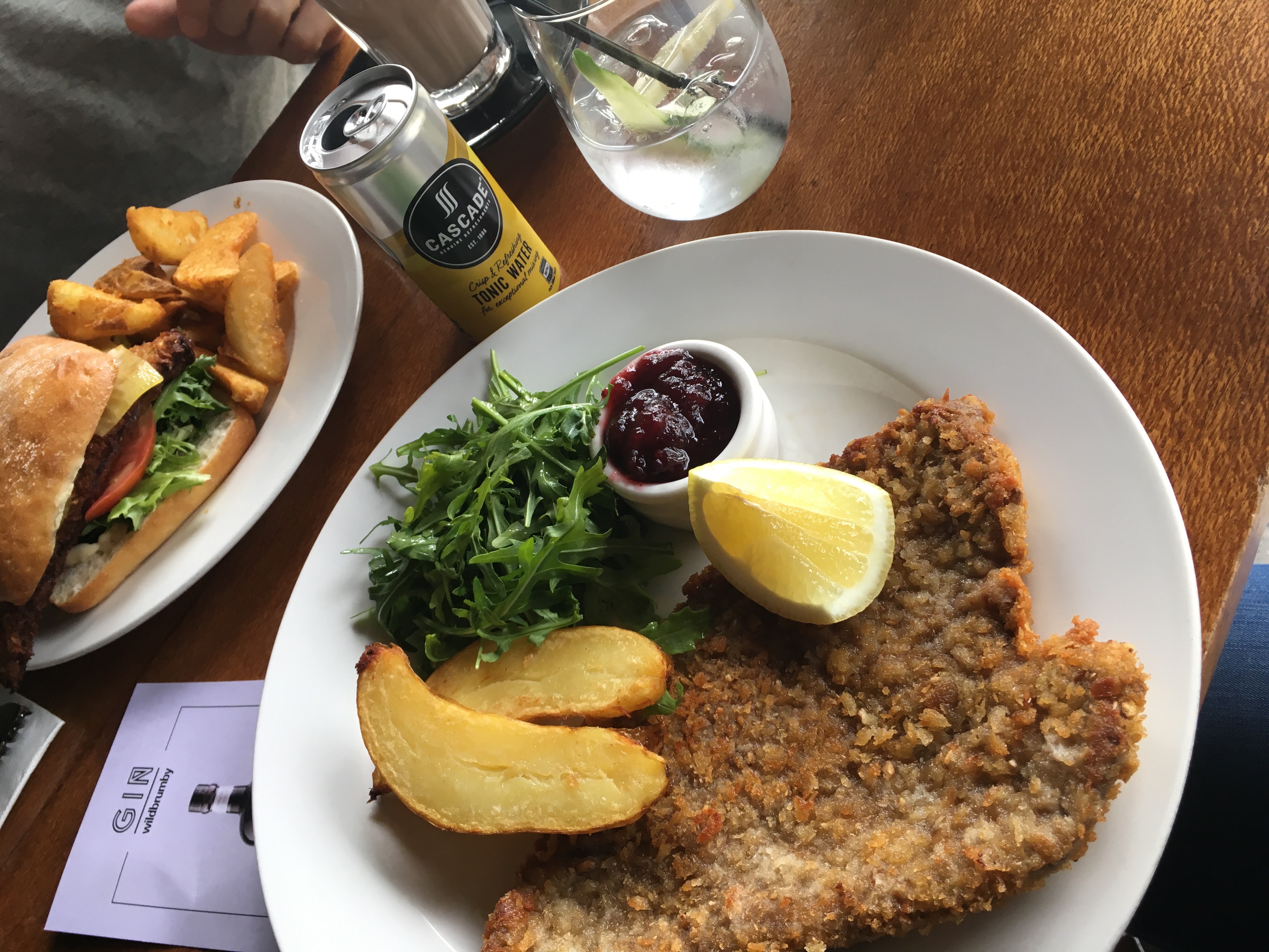 I ordered a Wild Brumby G&T which went down well, and whilst we waited for food we could sample the homemade schnapps in various flavours (cherry, apple, limoncello..) and also the raspberry infused gin – delicious!