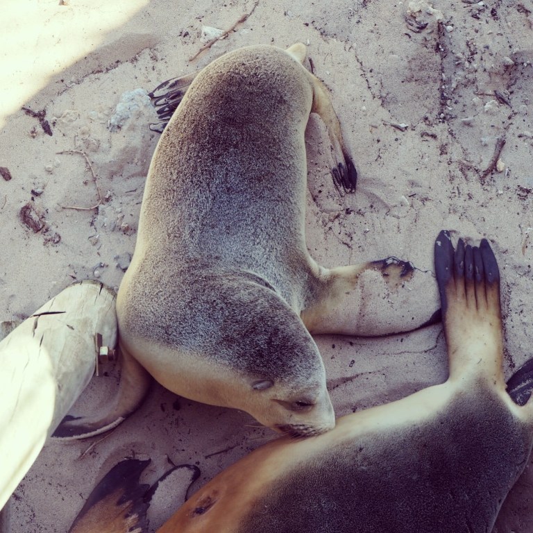 The next day we were up early and Ben was off on the bike again. He made his way towards our lunch stop at Vivonne Bay. I picked him up en route and we made a detour to Seal Bay, to see the sea lions!