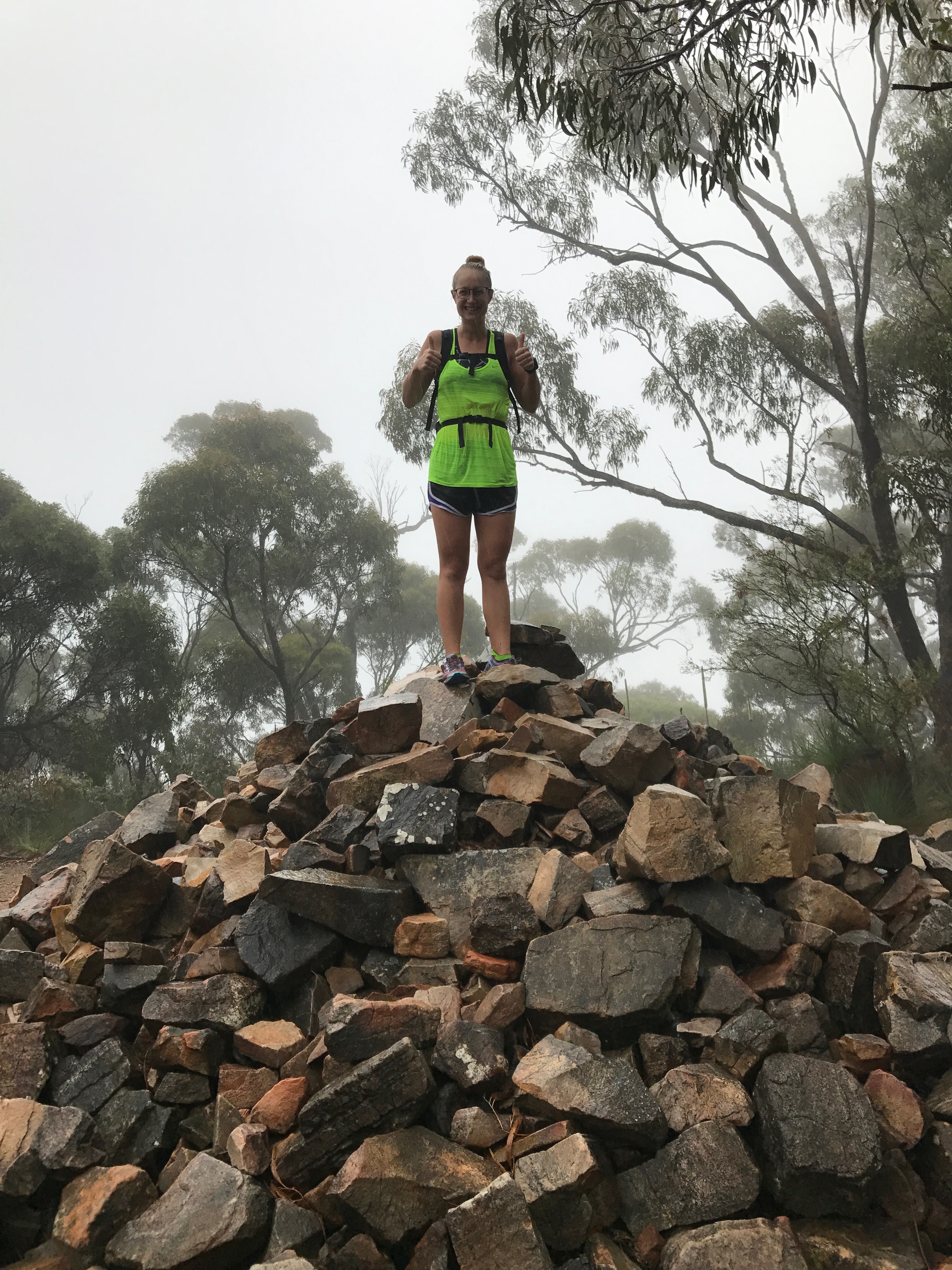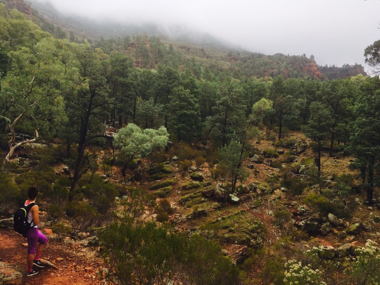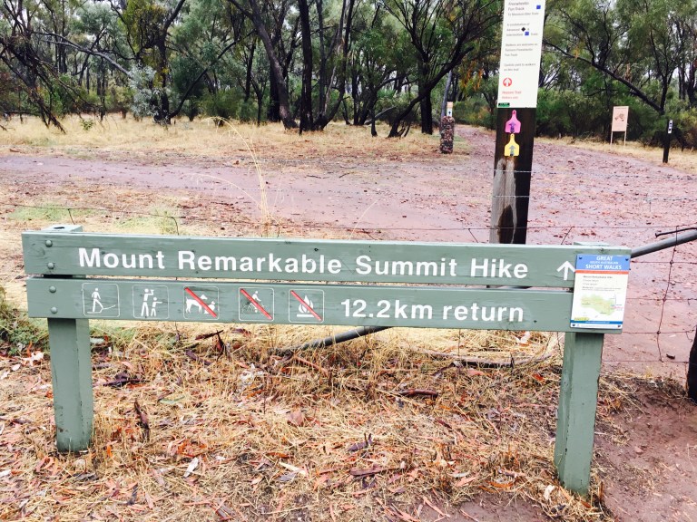 Mount Remarkable is a hub for hiking and mountain biking. Neither really appealed in the rain but we thought we had less chance of falling over walking. After a very cosy but slightly scary night’s sleep in the bus (no other people around and lots of noises – I know I know, city folk) we set off on the summit return hike. There were various versions of how long this is/how long it would take but we got the gist it was about 12-14ks return and would take about 4-6hours.