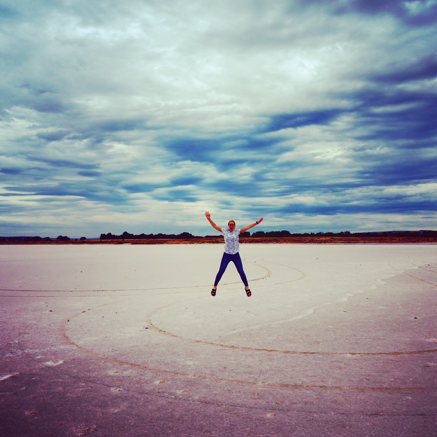 We zoomed straight up north, spotting a pink-ish lake next to the road a couple of hours north of Adelaide. This was Lake Bumbunga. We strolled down onto the lake for a couple of snaps 🙂