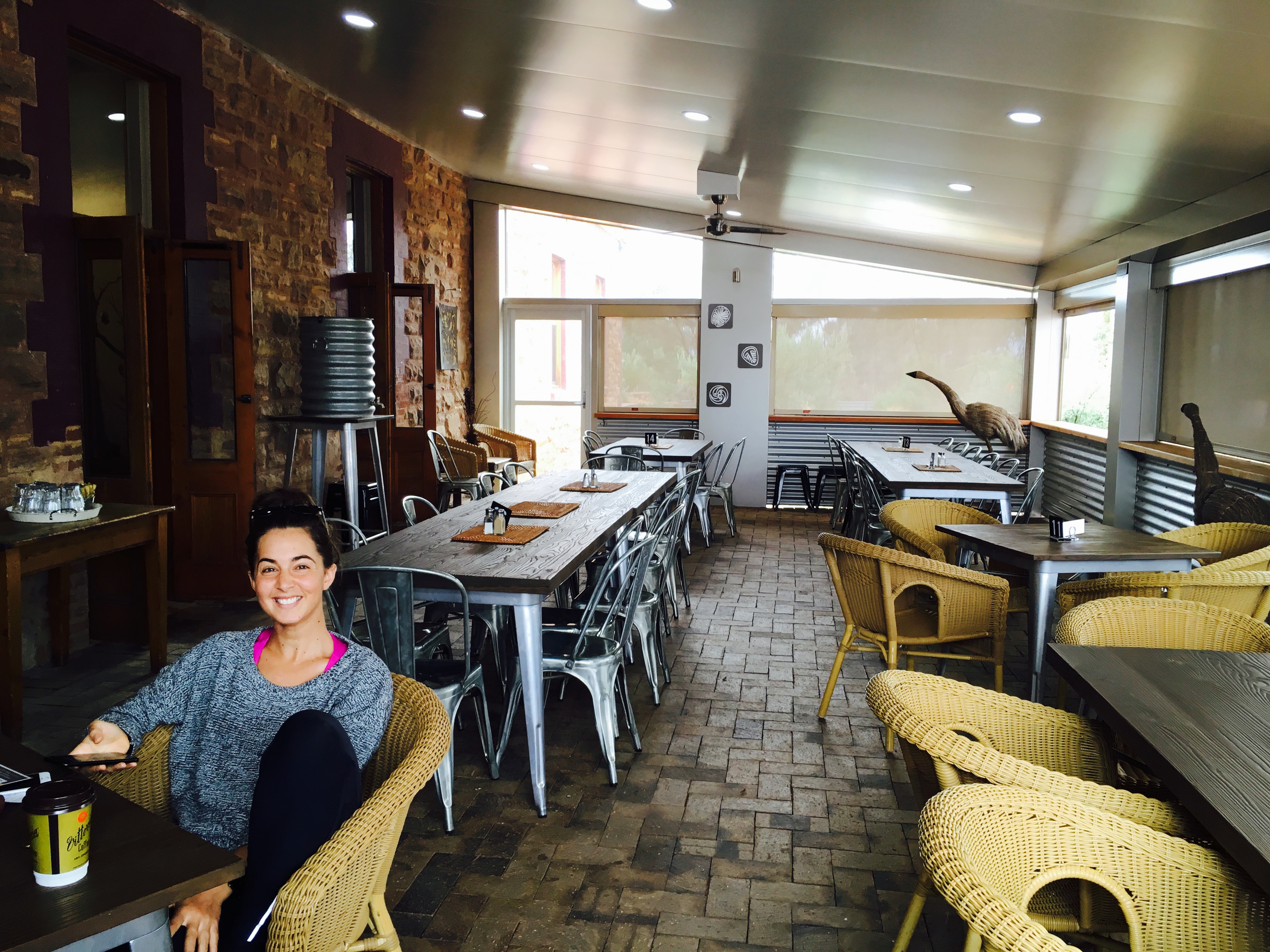 We drove over to the nearby Rawnsley Park Station, saw a few Emu en route, and got a teeny bit of pink in the sky as we had a sundowner hiking reward drink. Unfortunately Rawnsley Park had been fully booked for accommodation and was also fully booked for dinner, but the kind chef made us some chips to nibble on as we sat outside.