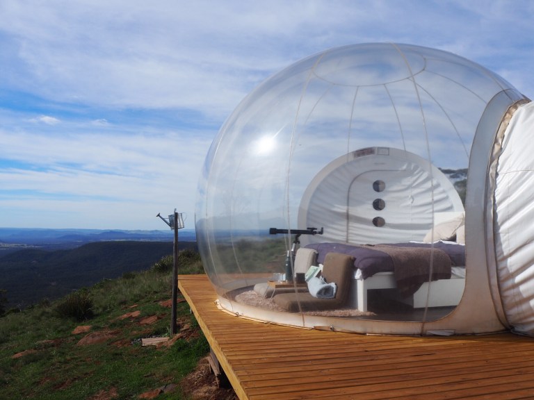 After fantastic glamping birthday weekends away the last 2 years at both Paperbark and JR’s Eco Hut I thought why break with tradition and booked a stay at somewhere I’ve been wanting to visit since I first saw it over a year ago… Bubbletent Australia is a collection of 3 transparent orbs set on a farming hillside, overlooking Capertee Canyon, 3 hours from Sydney.