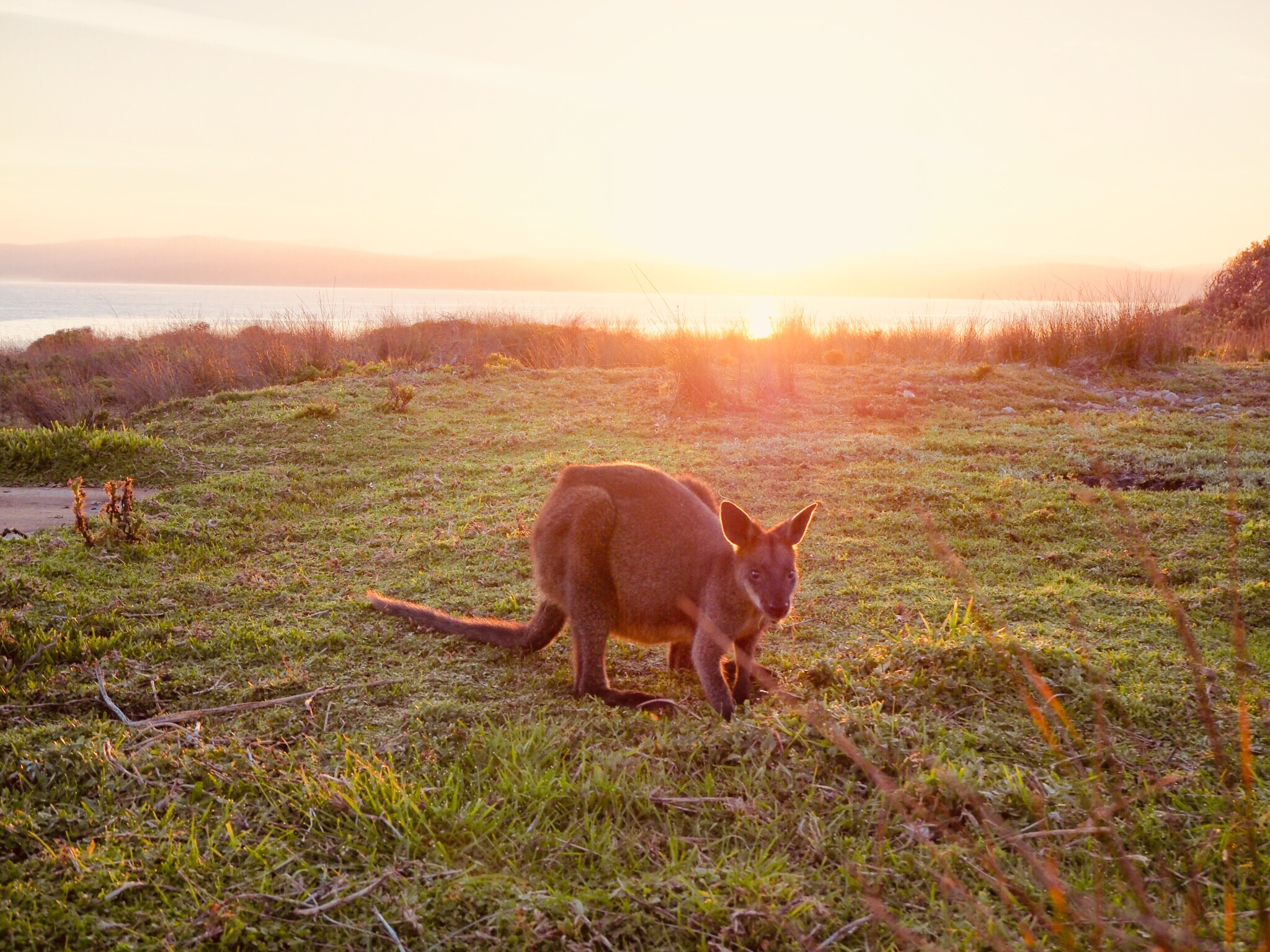 Wombat palThe original lighthouseAnd the solar panels for the new oneSome more company at sunset. Luckily not an emu in sight!The light keeper’s cottages