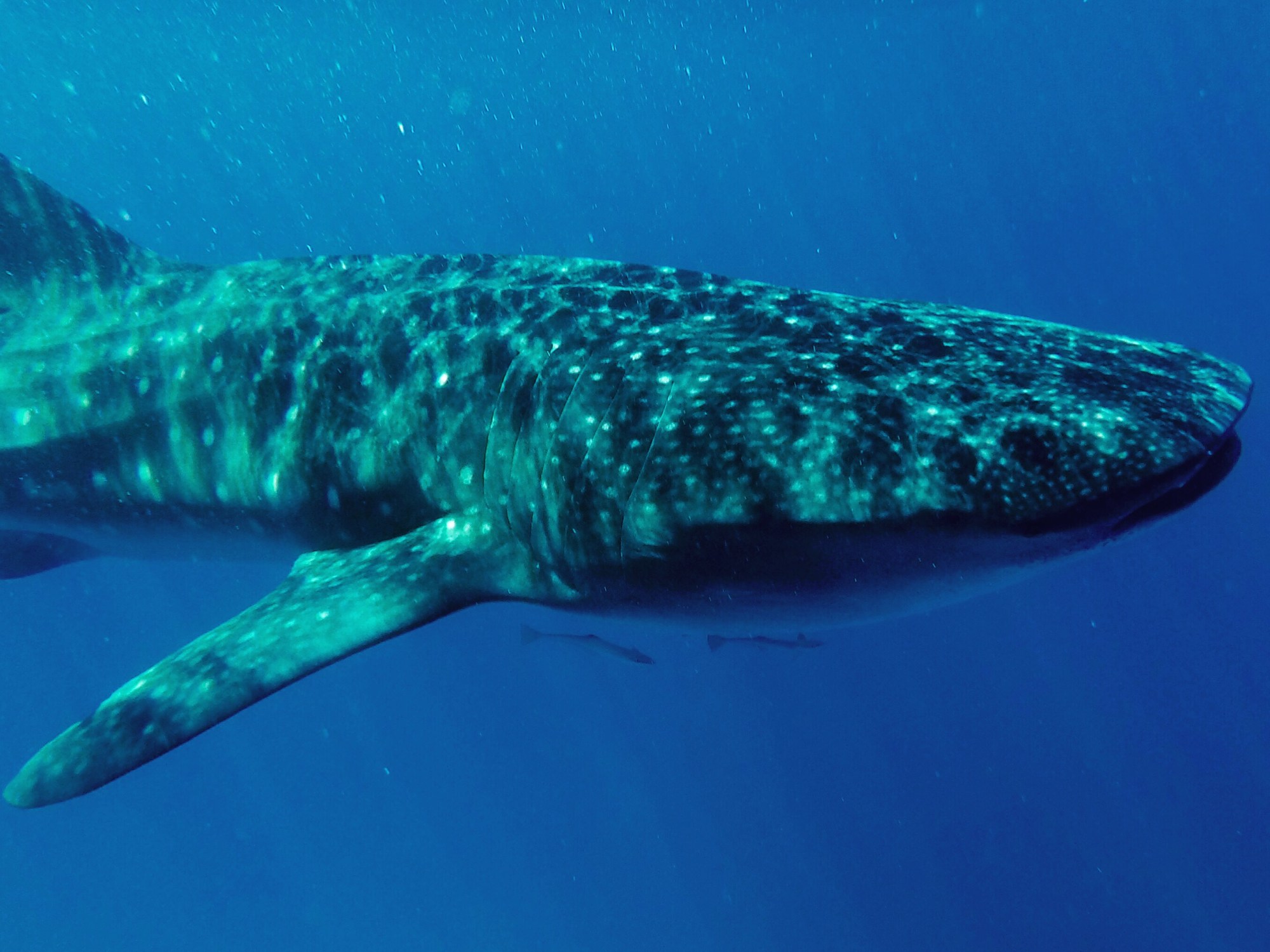 We were lucky that the first whale shark was super chilled and stayed near the surface for an hour. After an hour the guidelines say the boat has to leave the shark, so off we went to find one of his pals. Whale sharks can dive to over 1700ms (over a mile DEEP!), this is one of the reasons they are hard to track because often even if a shark is tagged, the tag cannot withstand the water pressure at that depth.