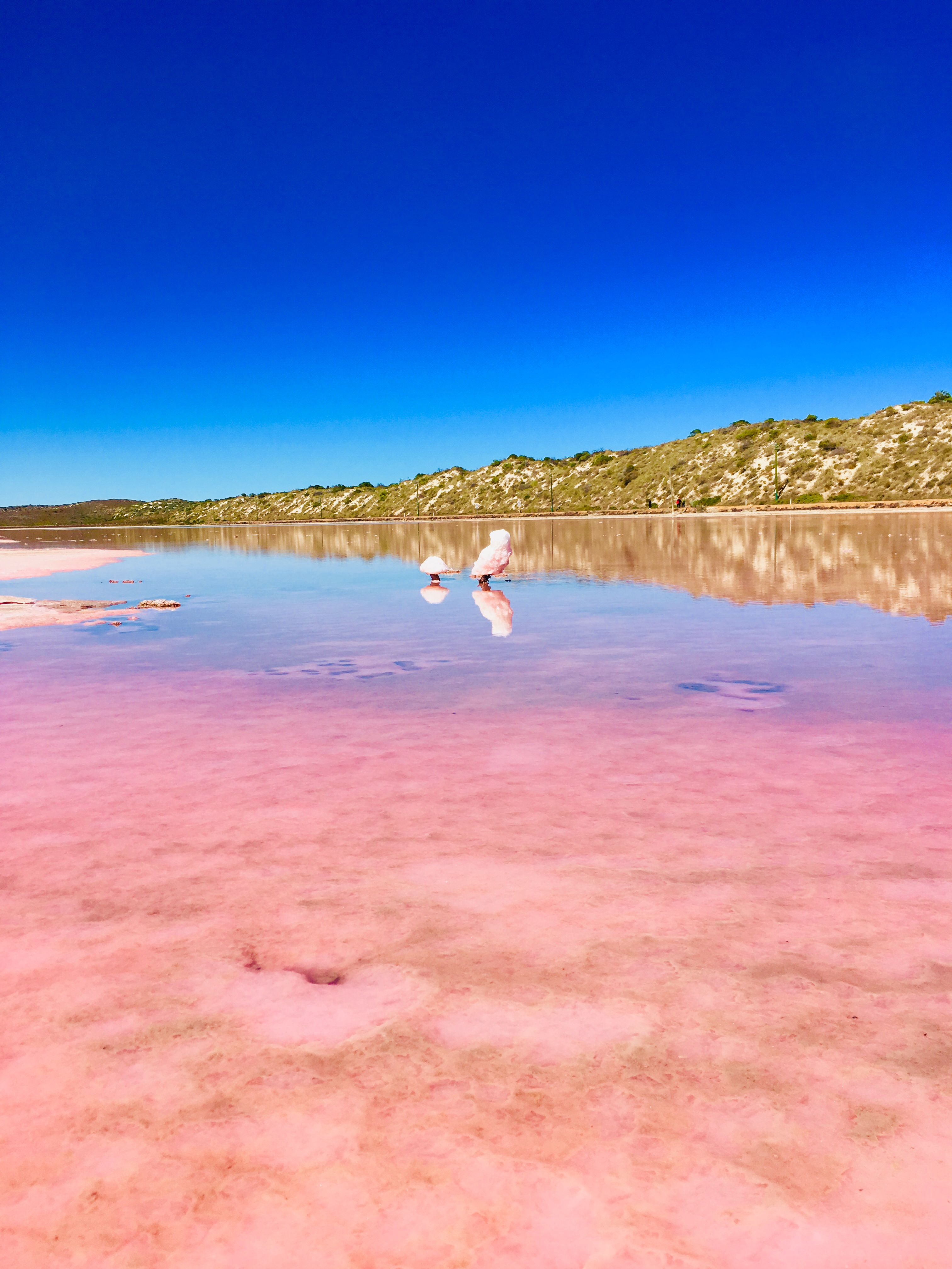 This lake was huge, much bigger than the one we’d seen on Rottnest. Plenty of room for running around and pretending to be flamingos. Not so good for hide and seek.