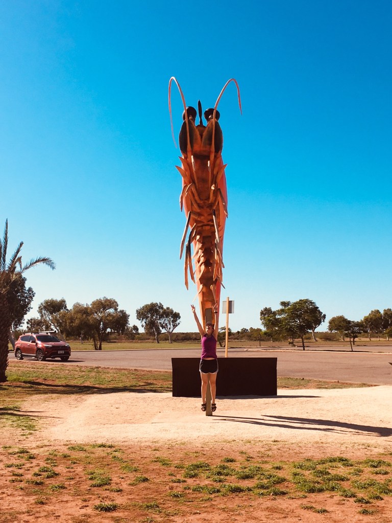 No Australian roadtrip is complete without a giant object stop. Dermot thought the giant prawn in Exmouth was particularly appropriate since I may have caught some sun on my forehead when on the boat (rookie). The prawn gets put away during cyclone season…
