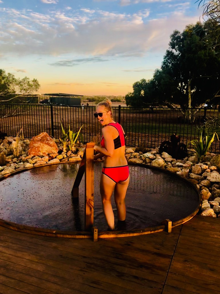 The river had water running, which apparently only happens a couple of times a year. So on our sunrise wake up we wandered onto the river bed and then popped into the natural hotpools at the camp – the water bubbles up from over 100m underground. It had an odd coppery tang to it, and warnings not to put your head under, but was still quite relaxing!