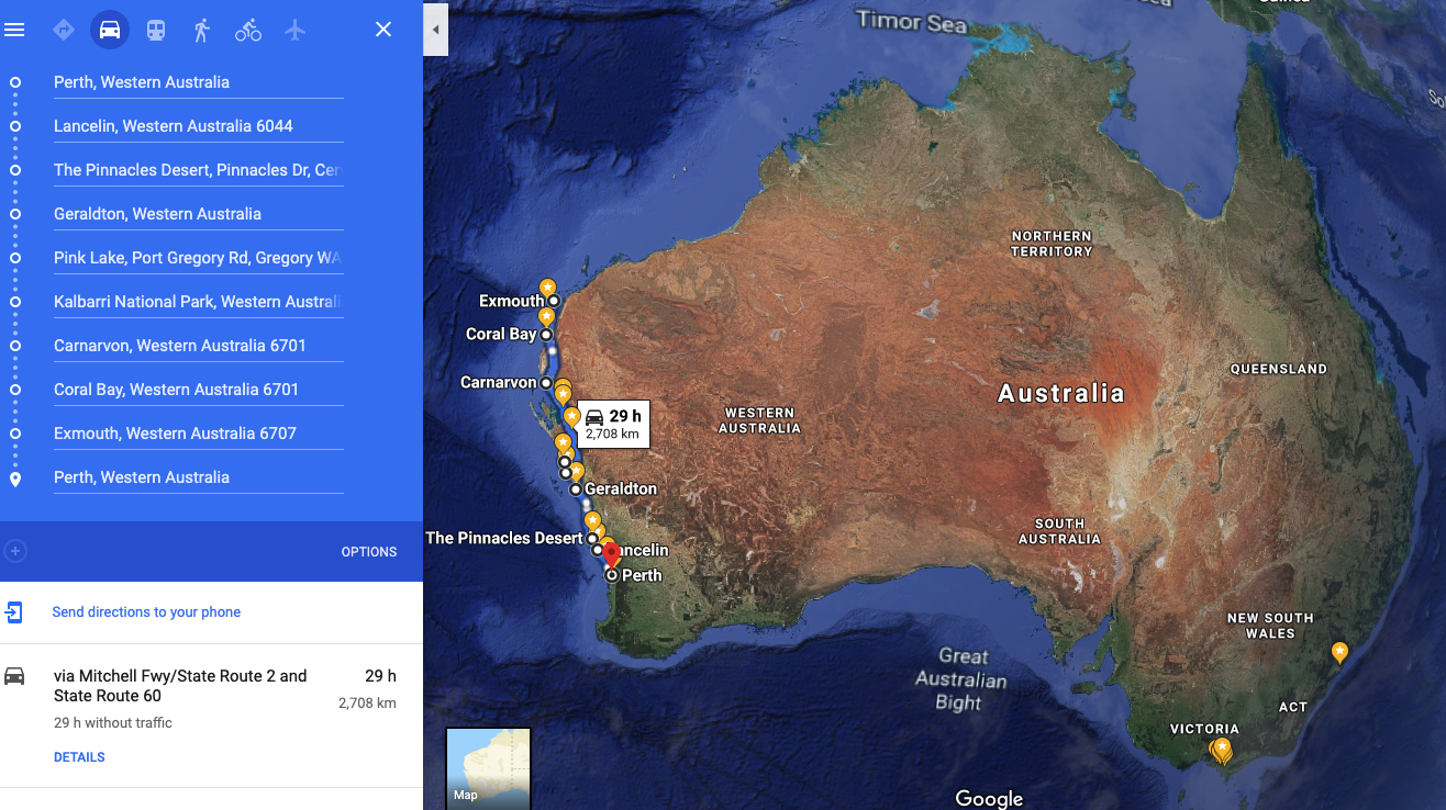 DAY 2: PERTH –> LANCELIN –> PINNACLES –> GERALDTON (~450kms)